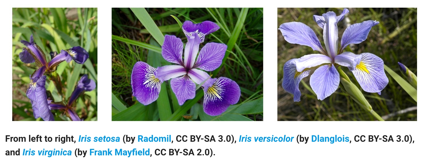 For this code-along we'll go through the example found here. It uses Fisher's iris data set, which measures the length and width of petals and sepals of 3 different species of irises. Sepals in this case are the mini-petals, though on many flowers the sepals are green.